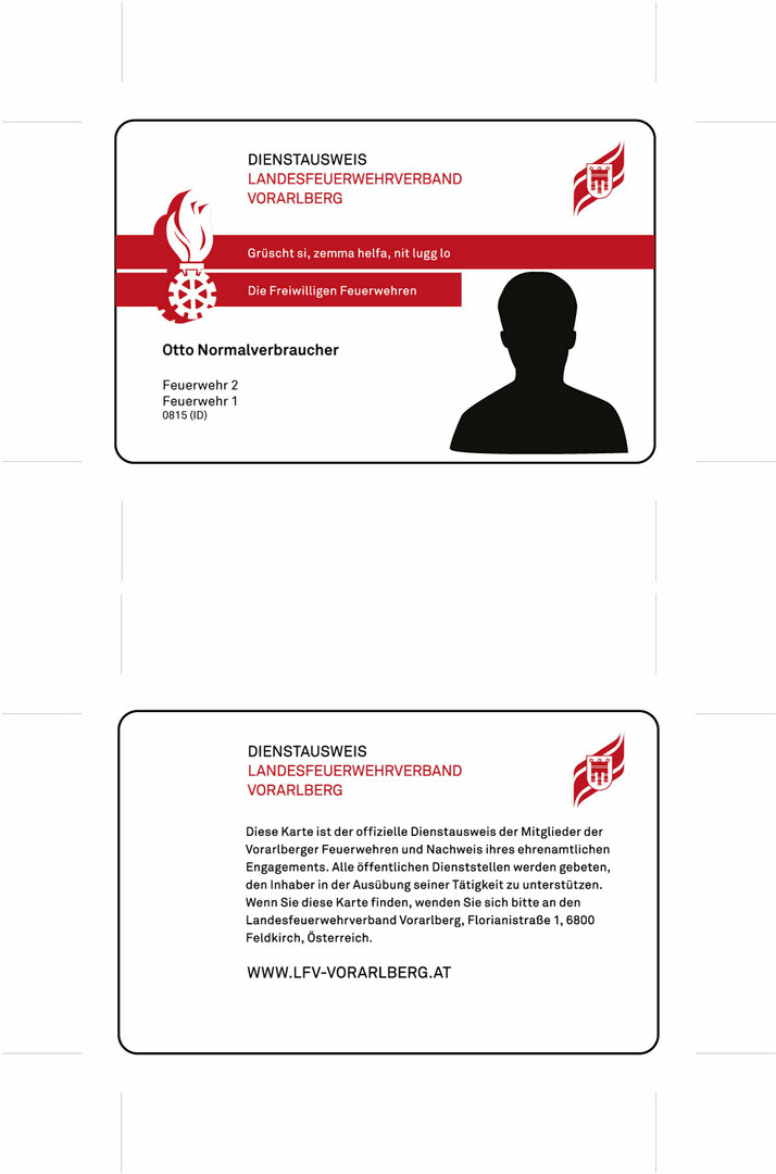 - Bei mehrfachen Mitgliedschaften (z.b. Orts- und Betriebsfeuerwehr) erfolgt die Ausstellung EINES persönlichen Feuerwehr-Dienstausweises, auf dem alle Feuerwehren angeführt sind, bei denen eine Mitgliedschaft gegeben ist.