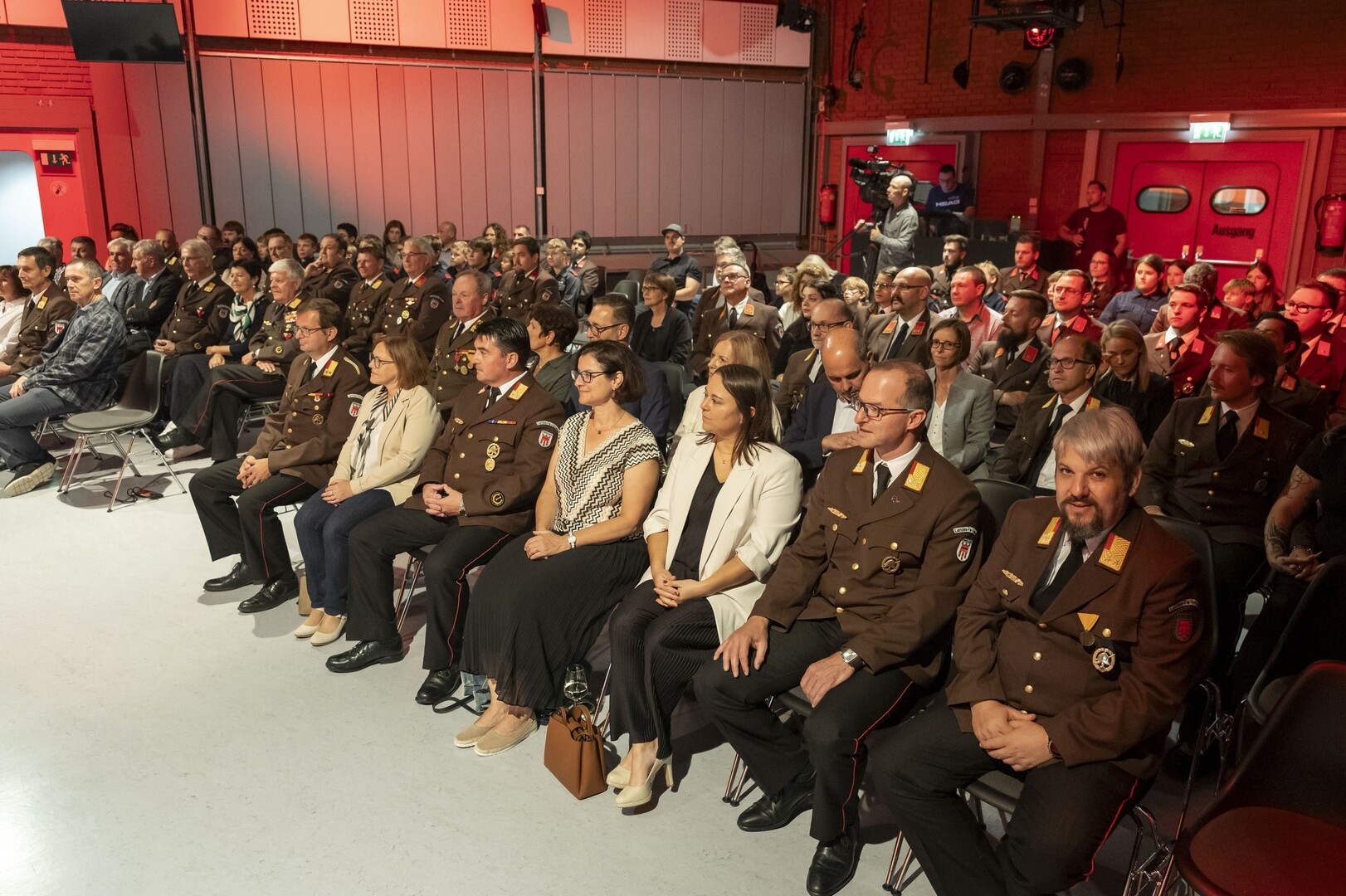 400 Delegierte und Gäste, darunter Landeshauptmann Markus Wallner, Bürgermeister der Gemeinde Nüziders Florian Themeßl-Huber, zahlreiche Vertreter der Hilfs- und Rettungsorganisationen sowie Vertreter der Feuerwehren aus dem benachbarten Ausland waren beim Verbandstag der Vorarlberger Feuerwehren im Sonnenbergsaal Nüziders.