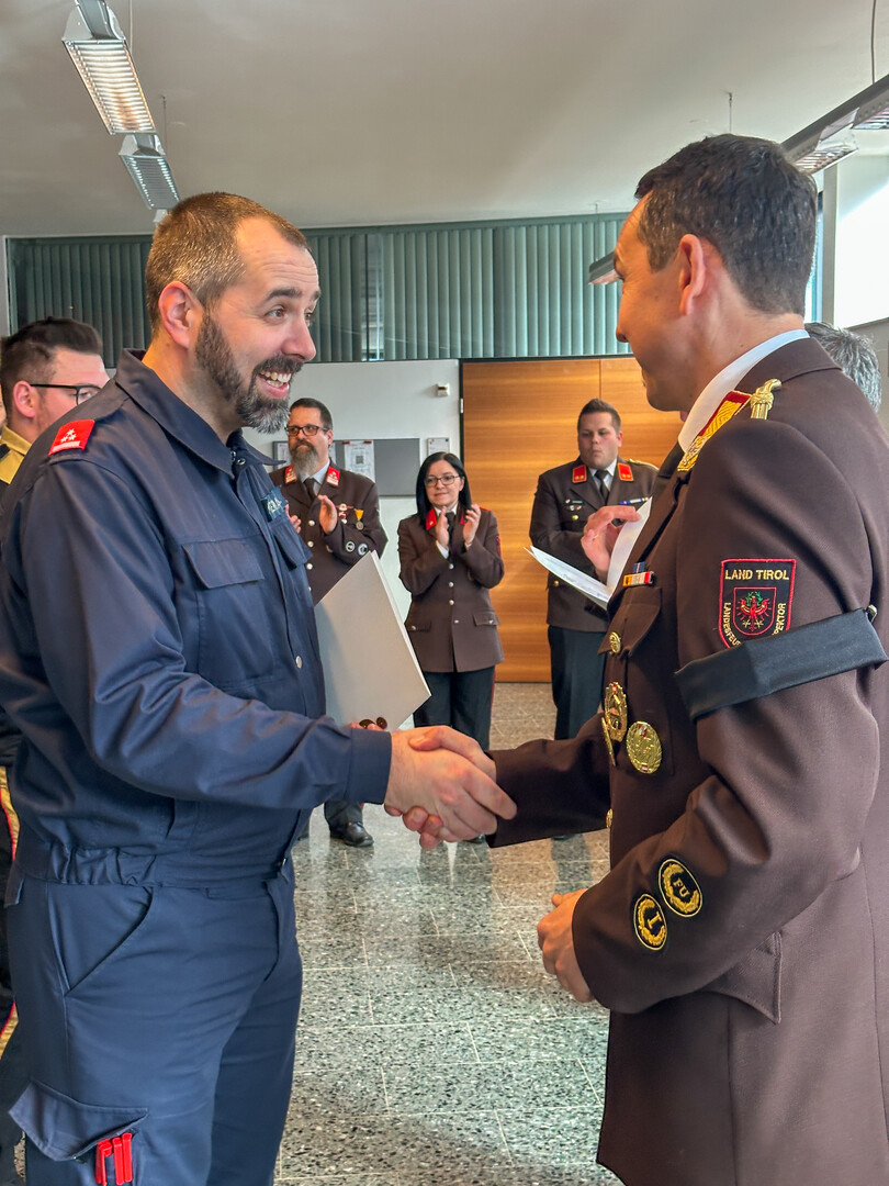 Am 14. März fand nach zweitägiger Vorbereitung der Leistungsbewerb um das Strahlenschutz-Abzeichen in Bronze statt. Sieben Teilnehmer:innen aus Vorarlberg stellten sich dem Bewerb und konnten bei der Schlussveranstaltung von Bewerbsleiter Anton Plank, LBD Jakob Unterladstätter und LFI Rene Staudacher das Abzeichen entgegennehmen. Drei Bewerter aus Vorarlberg unterstützten die Kollegen aus Tirol. Die Strahlenschutzbewerbe finden in Kooperation mit dem Landesfeuerwehrverband Tirol statt.