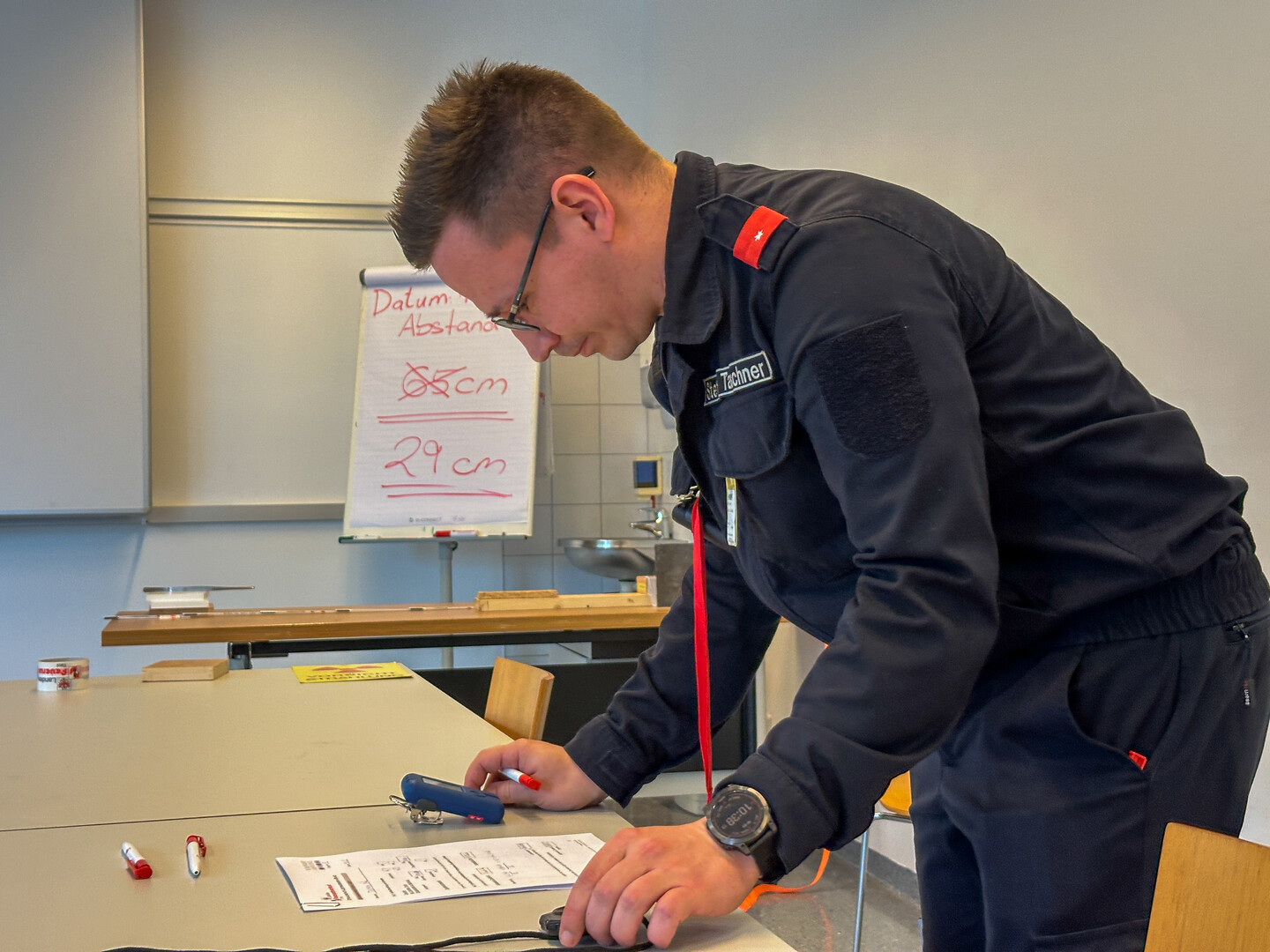 Wenn es um das „Goldene Feuerwehrleistungsabzeichen“ geht, dann ist umfangreiches Wissen gefragt. Die Feuerwehrleute müssen sich einem Fragenkatalog und praktischen Arbeiten vor einer Kommission stellen.