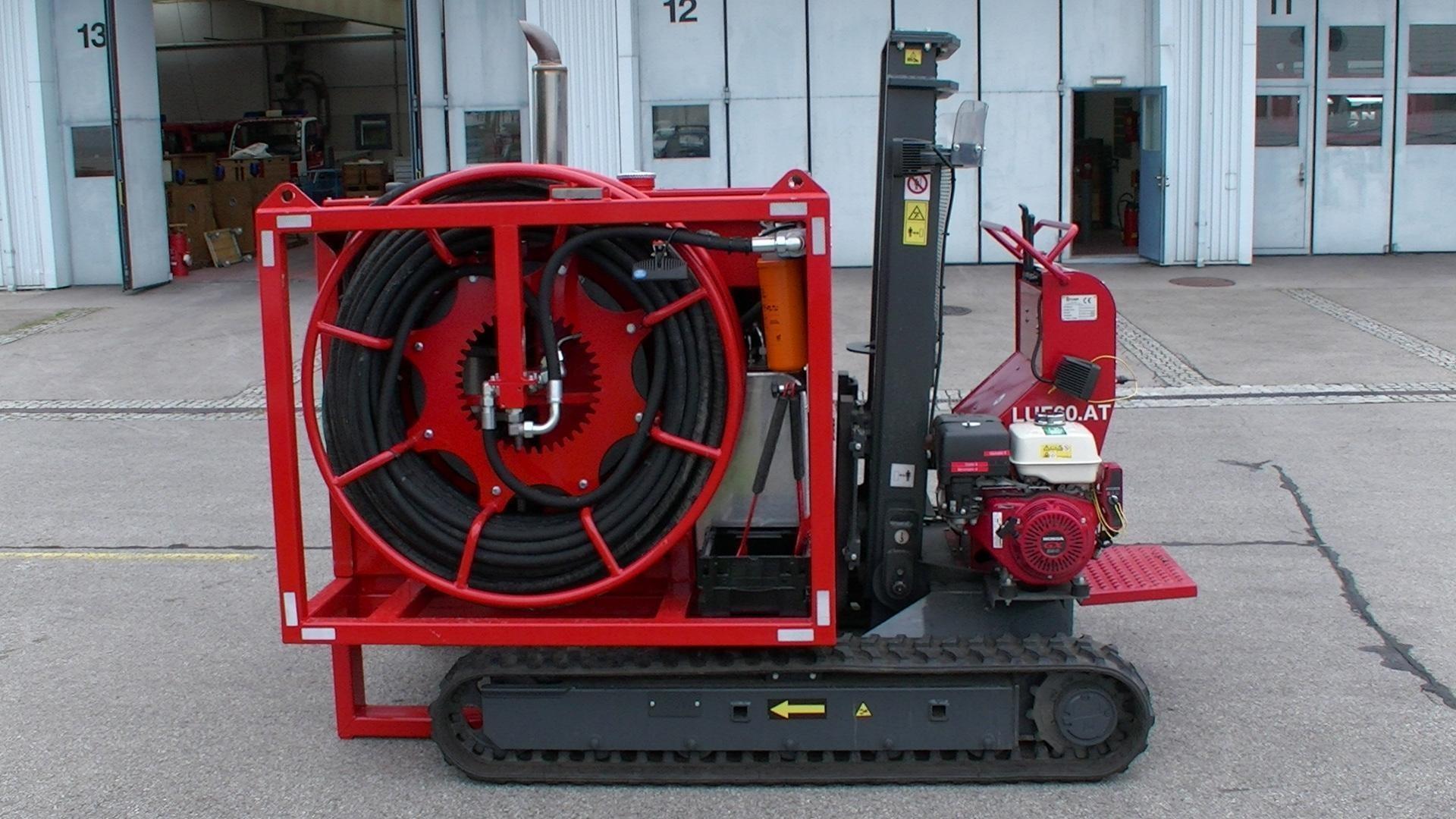 Bei diesem Einsatzmittel handelt es sich um eine Großpumpe, welche durch eine hydraulisch angetriebene Tauchpumpe bis zu 10.000 l/min fördern kann. Da das Hydraulikaggregat mit einem Raupengabelstapler transportiert wird, können auch schlecht zugängliche Einsatzstellen erreicht werden. Die hydraulisch angetriebene Tauchpumpe kann, mittels der zugehörigen Schlauchleitung, bis zu 50 Meter vom Hydraulik Aggregat entfern betrieben werden. Der Raupengabelstapler kann in weiterer Folge des Einsatzes zum Beispiel zum Transport von Sandsäcken verwendet werden.