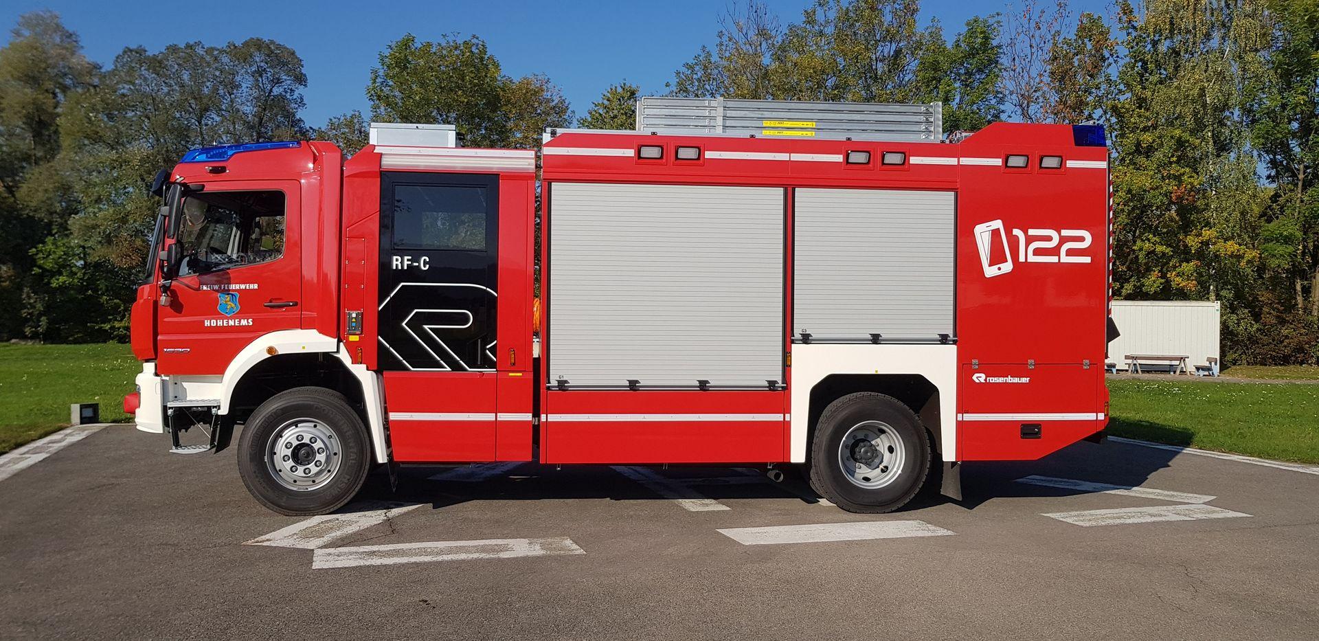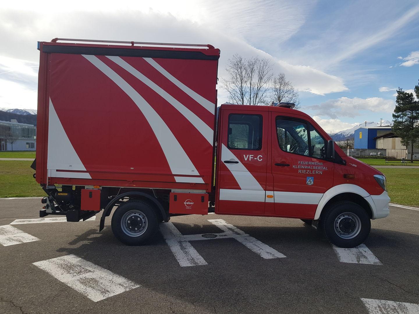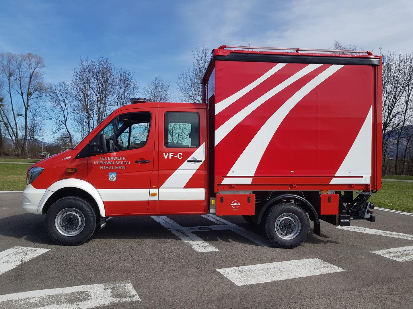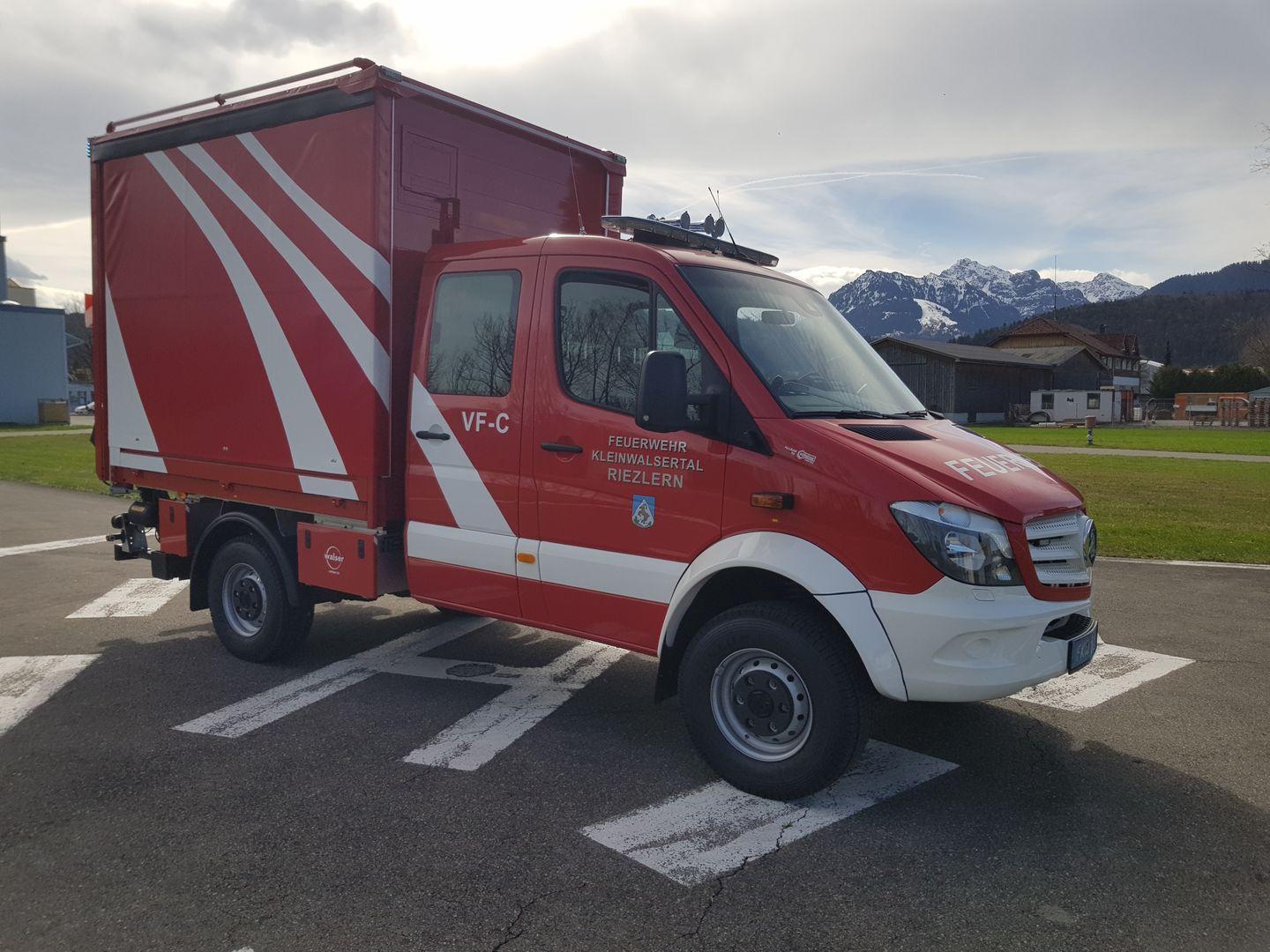 Zuwachs im Feuerwehrhaus Hohenems gibt es mit dem neuen Rüstfahrzeug. Das Fahrzeug bringt technisches Gerät an den Einsatzort und hat zudem einen Laderaum im Heck, welcher mit einem Rollcontainersystem schnell be- und entladen werden kann. Somit kann das Fahrzeug je nach Einsatzfall mit zusätzlichem Gerät ausgestattet werden.