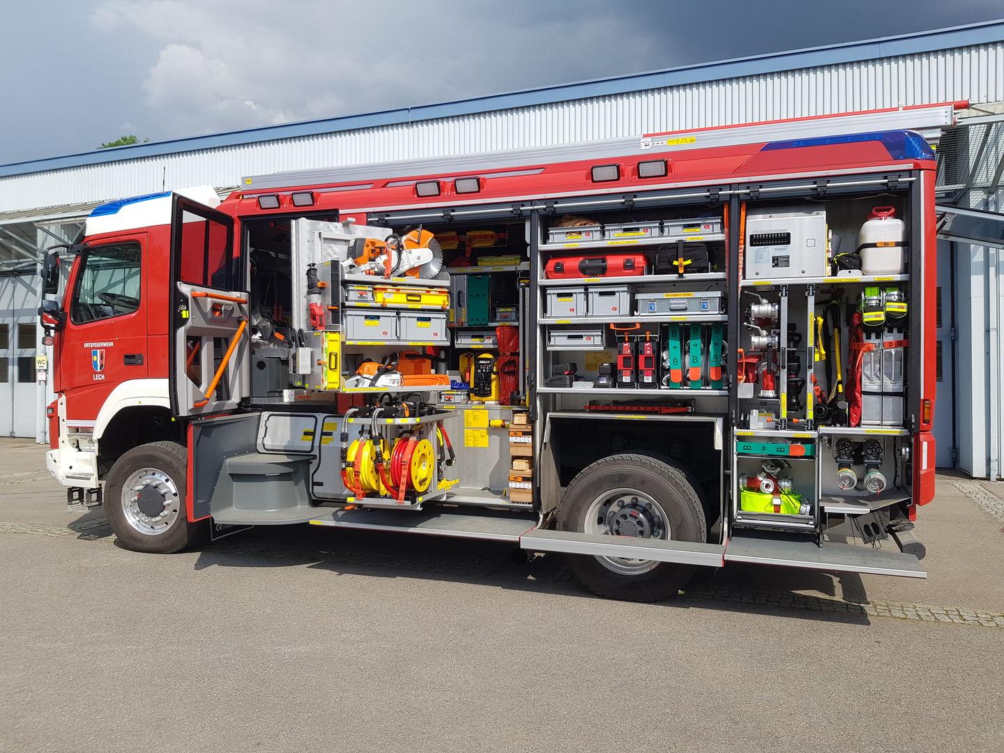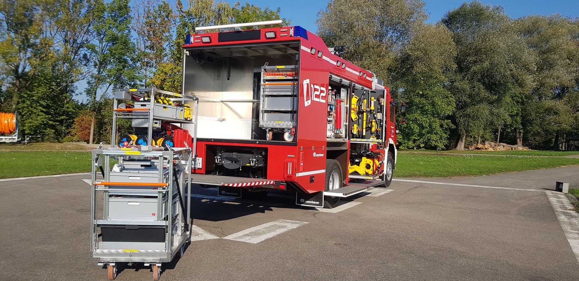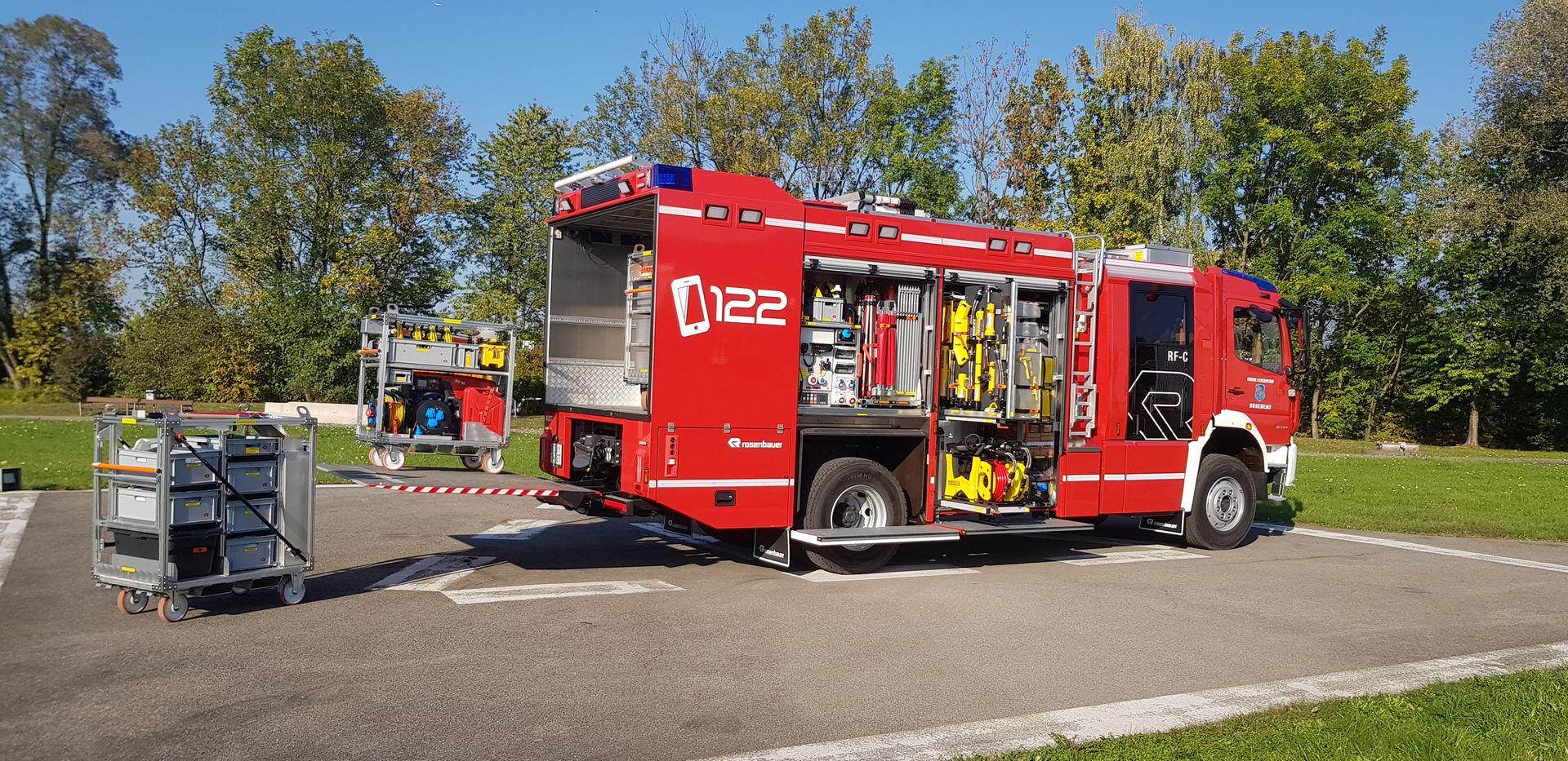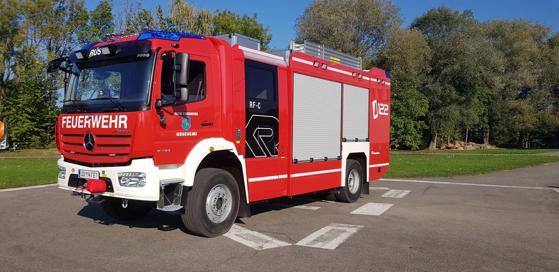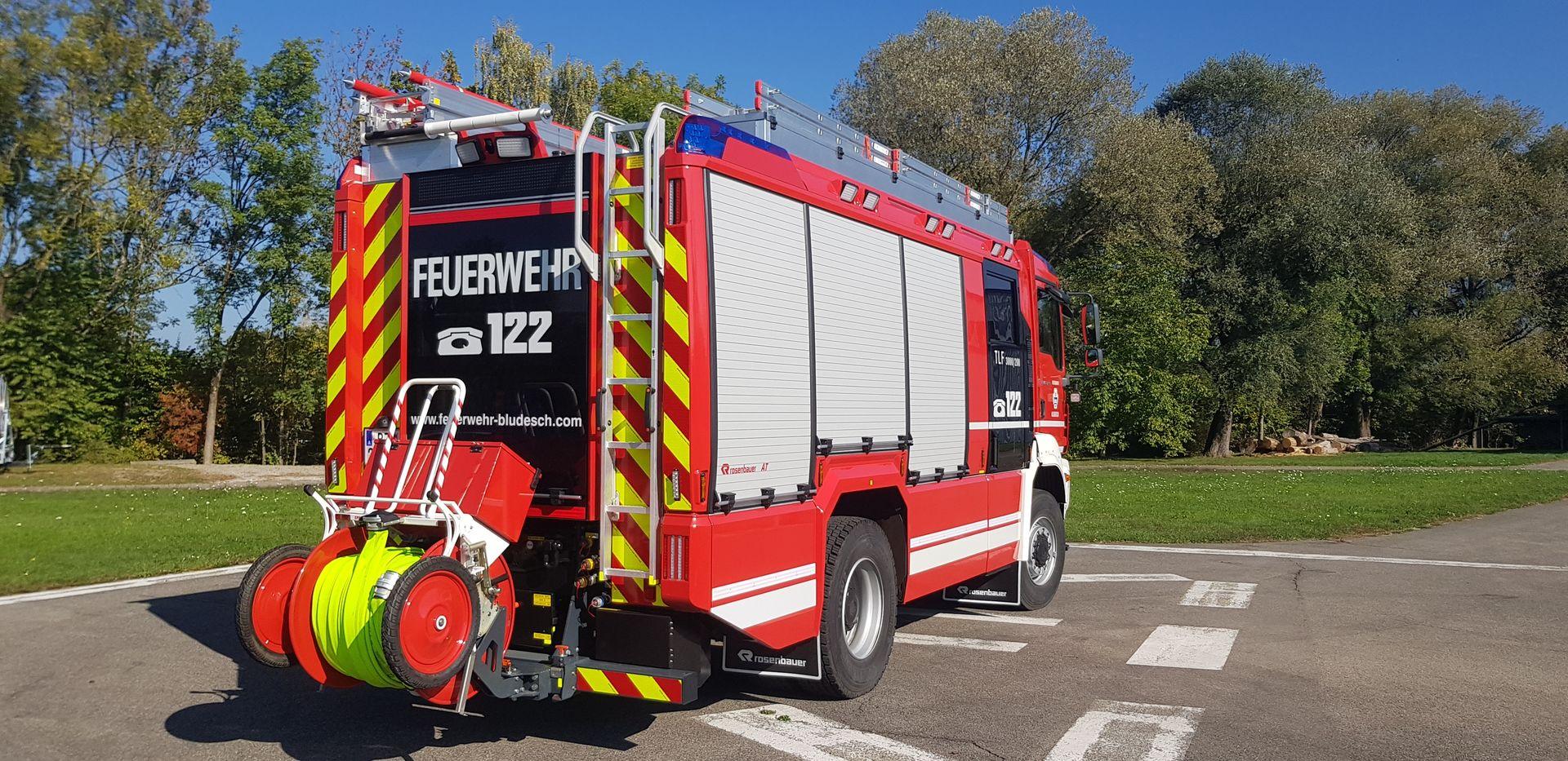 Zuwachs im Feuerwehrhaus Hohenems gibt es mit dem neuen Rüstfahrzeug. Das Fahrzeug bringt technisches Gerät an den Einsatzort und hat zudem einen Laderaum im Heck, welcher mit einem Rollcontainersystem schnell be- und entladen werden kann. Somit kann das Fahrzeug je nach Einsatzfall mit zusätzlichem Gerät ausgestattet werden.