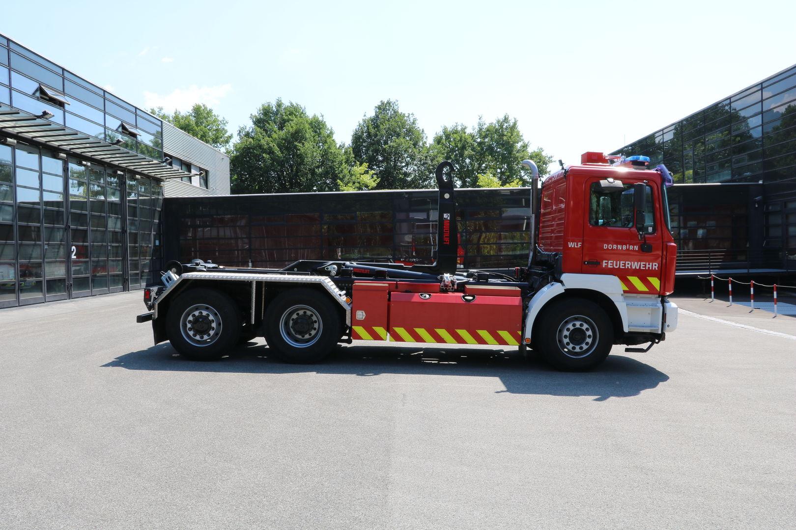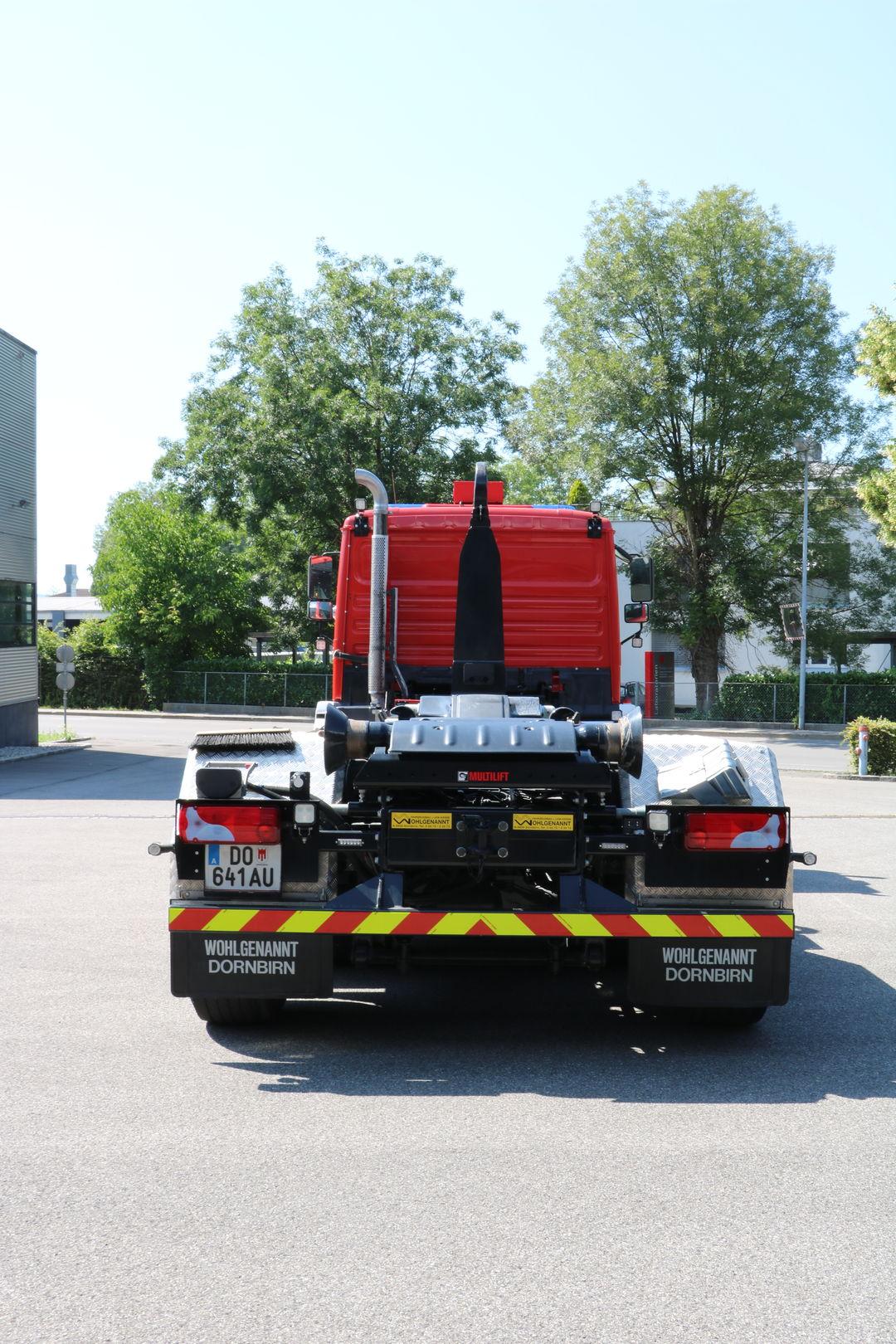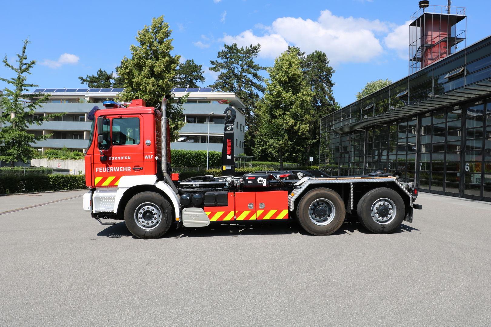 Die Dornbirner Zentrale bekommt mit dem neuen Wechselladefahrzeug Verstärkung im Materialtransport von und zur Einsatzstelle. Ganze Container können mit dem neuen Fahrzeug verladen und transportiert werden.