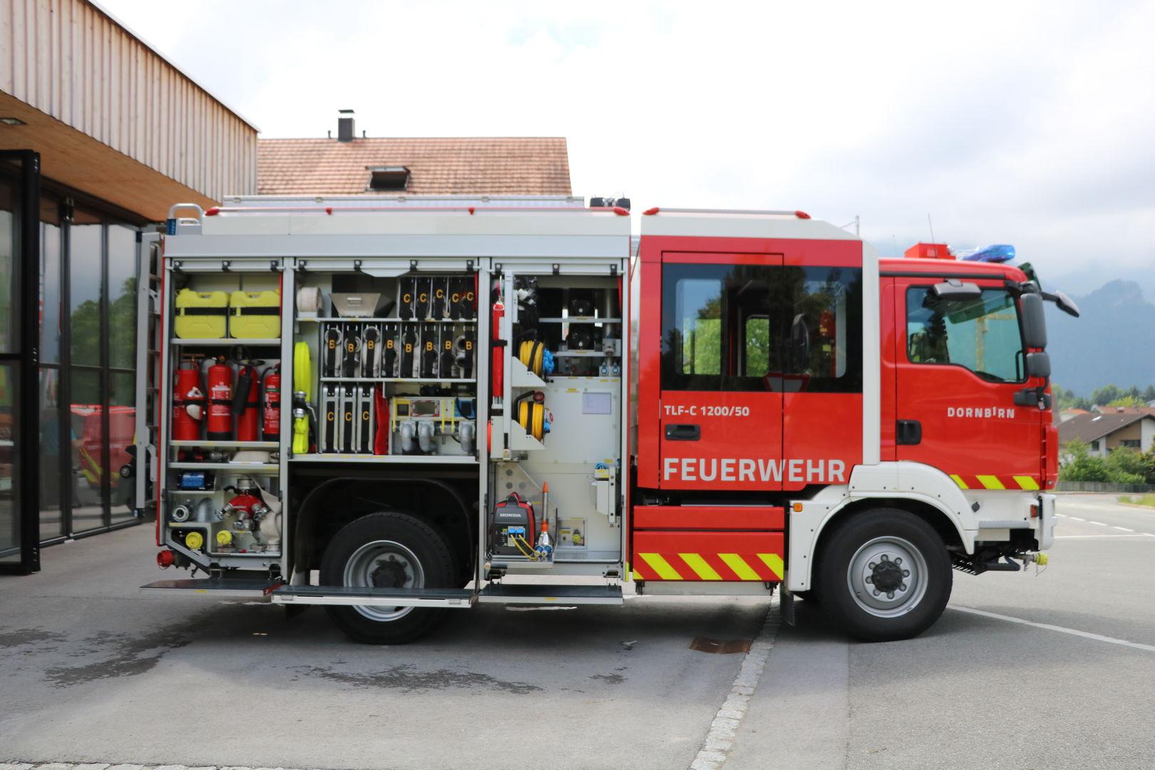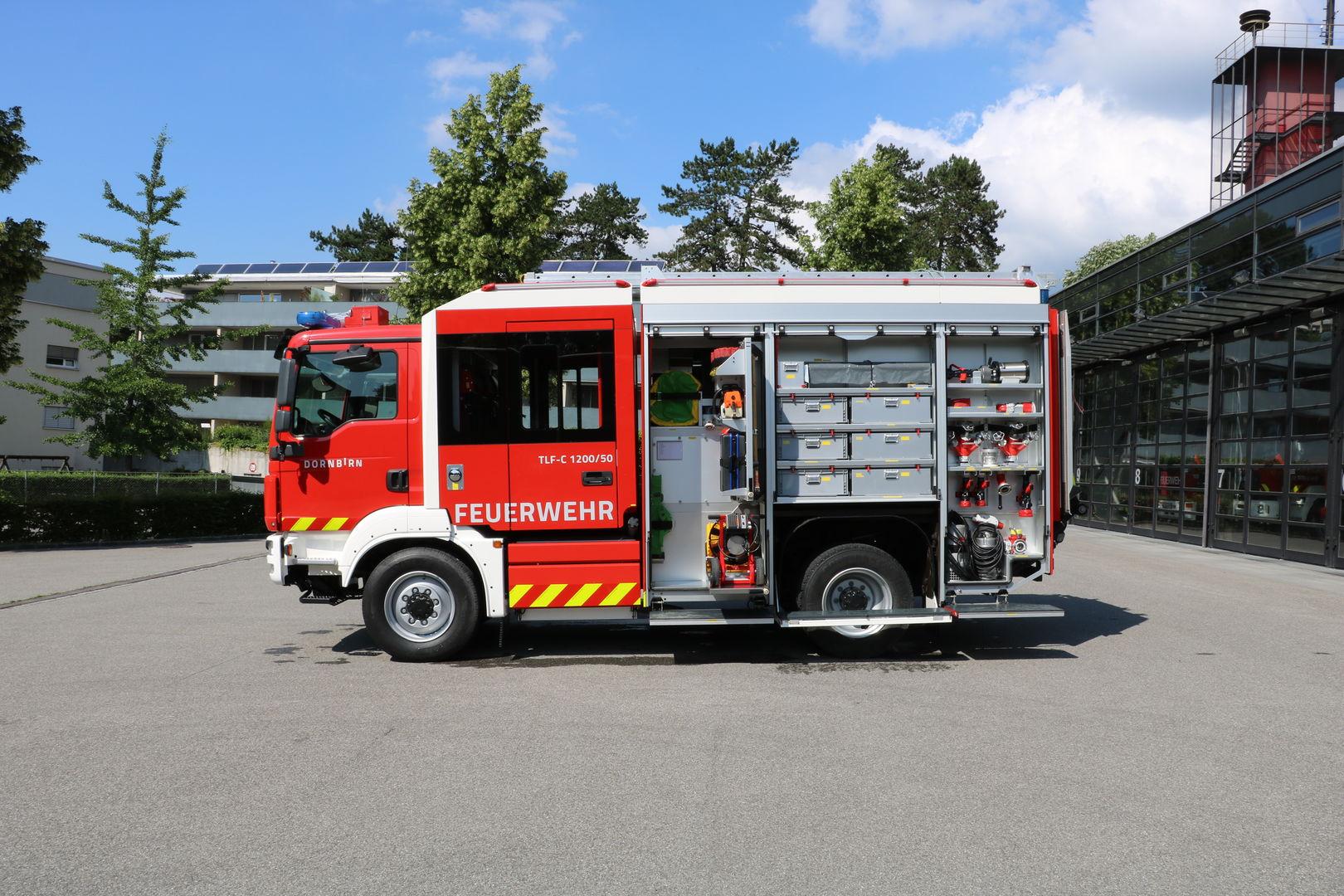 Das Gerätehaus Kehlegg im Gemeindegebiet von Dornbirn bekommt Verstärkung im Erstangriff in Form des neuen Tanklöschfahrzeuges. Das Fassungsvermögen des Wassertanks wurde von den gewohnten 2000 Liter auf 1200 Liter herabgesetzt und dafür die Möglichkeit geschaffen, den hinteren Teil modular mit Containern zu beladen. Die Vorteile von Versorgungsfahrzeug und Tanklöschfahrzeug sind dadurch auf vier Rädern vereint.