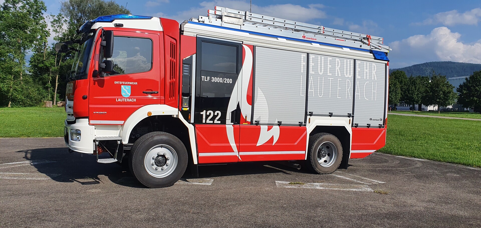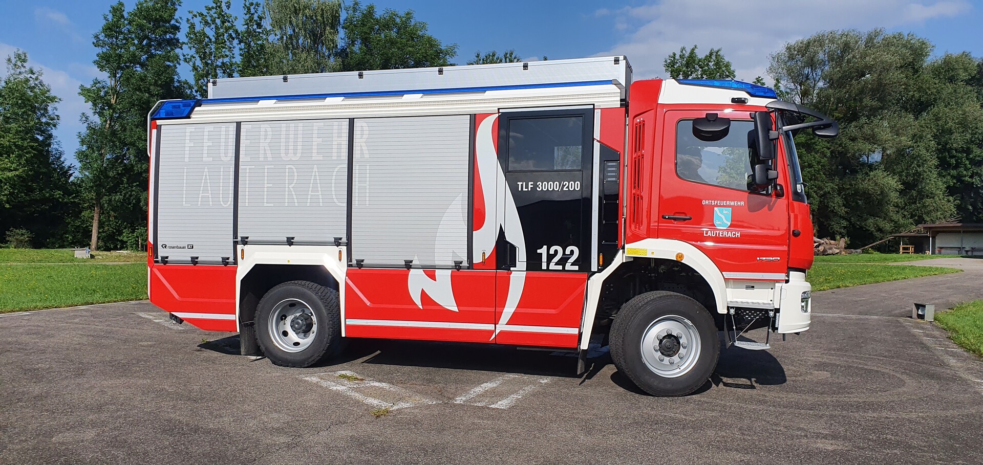 Das neue Tanklöschfahrzeug der Ortsfeuerwehr Lauterach ist auf dem neuesten Stand der Technik. Das neue TLFA-3000/200 wurde von der Firma Rosenbauer auf das Fahrgestell der Marke Mercedes aufgebaut. Es hat ein Wasservolumen von 3.000 Liter und 200 Liter Schaummittel.