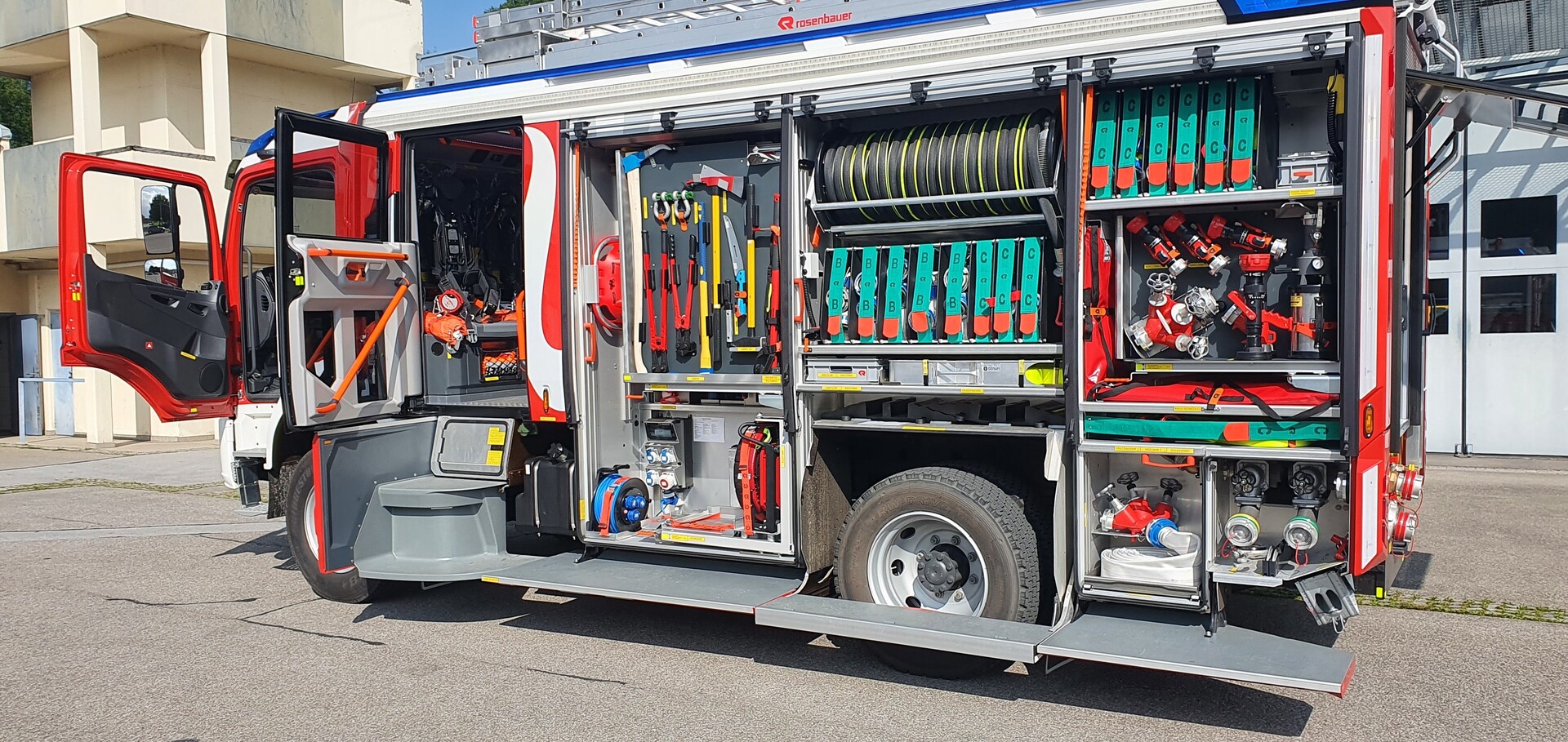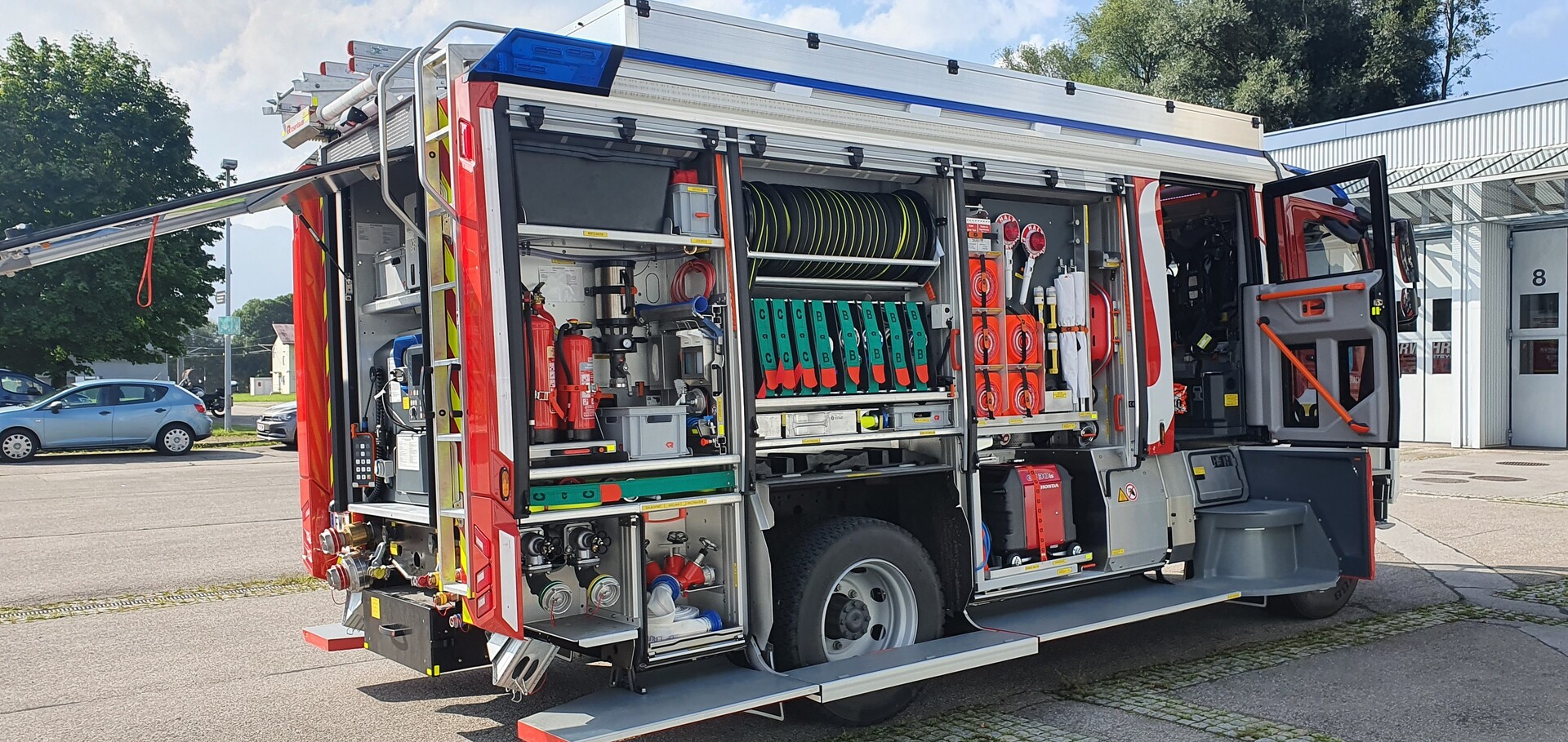 Mit dem neu angeschafften Löschfahrzeug mit Containersystem und Bergeausrüstung wurde bei der Feuerwehr St. Gallenkirch das in die Jahre gekommene Vorgängermodell ersetzt. Je nach Einsatzart lassen sich die vier Container unterschiedlich beladen. Neben Brandeinsätzen ist das Fahrzeug auch für technische Hilfeleistungen optimal ausgerüstet – von Unfällen, über Hochwasser, auslaufende Flüssigkeiten bis hin zur Wasserbeförderung über längere Wegstrecken. Insbesondere ist das Fahrzeug für Einsätze entlang der Montafonerstaße (L 188) und für den Katastrophenschutz konzipiert.und stellt damit eine enorme Aufwertung des Fuhrparks der Feuerwehr dar.