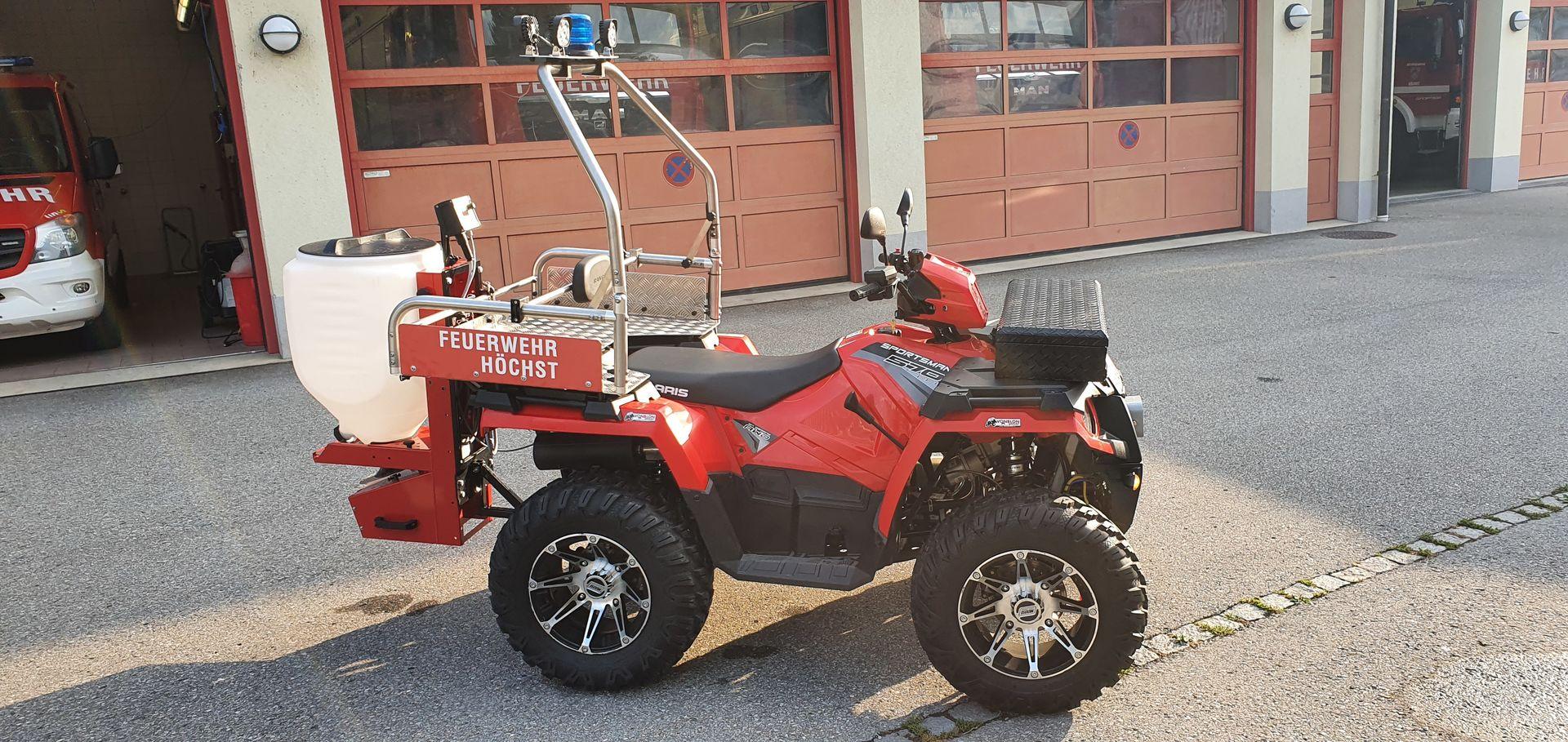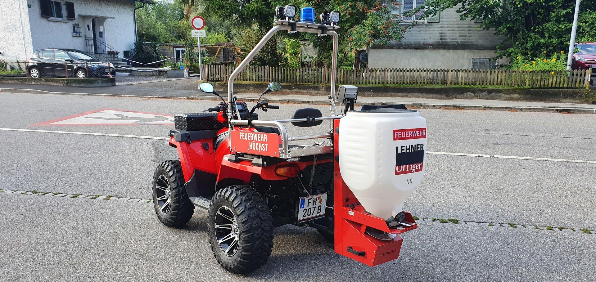 Die Feuerwehr Höchst hat ein neues Quad erhalten. Das Quad verfügt über eine Seilwinde an er Front und einem Streuaufsatz für Ölbindemittel am Heck.